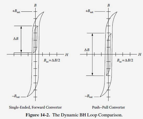 Tam emin olmamakla birlikte, bir convertarda B-H grafiğini ben kendi adıma söyleyecek olursam şöle çıkartıyorum. Eğer converter da nüvenin sarımlarına hep aynı yönde akım geliyorsa, o zaman o converter ın B-H grafiği forward converter daki gibi olur, fakat nüvenin sarımlarına alternans şeklinde bi yukardan bi aşağıdan zıt yönde akım geliyorsa o zaman, B-H grafiğide push-pull daki gibi olur.